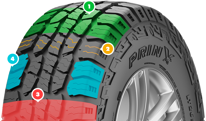 | 3 | Tecnologia de composto de banda de rodagem NBC (Nano Blend) aplicada para aumentar a resistência à cortes e arrancamentos de material da região, aumentar a durabilidade, mantendo a alta performance em todos os tipos de terrenos. |